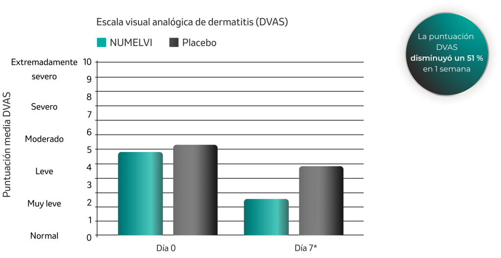NUMELVI® es bien tolerado y proporciona un alivio rápido del picor y la inflamación